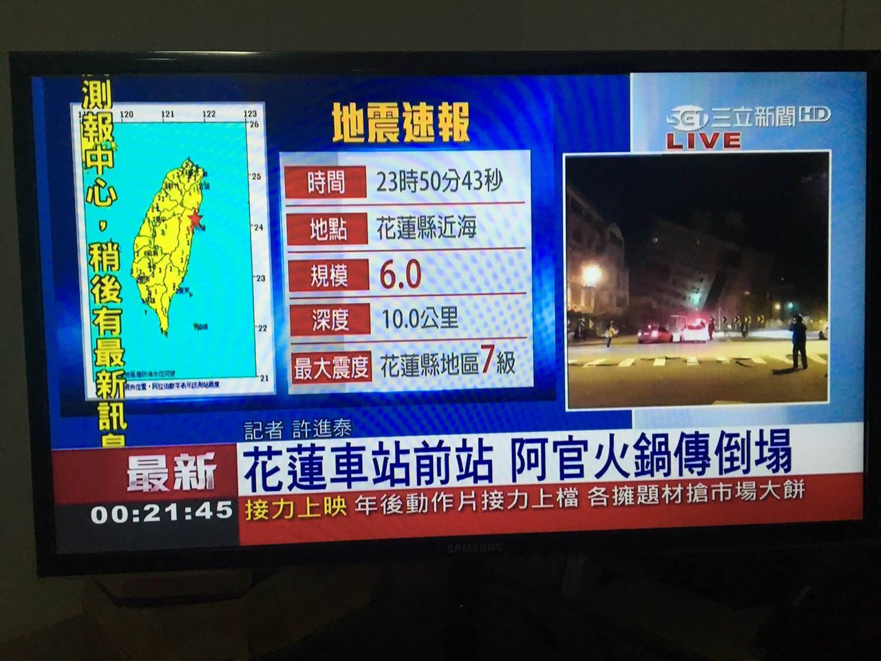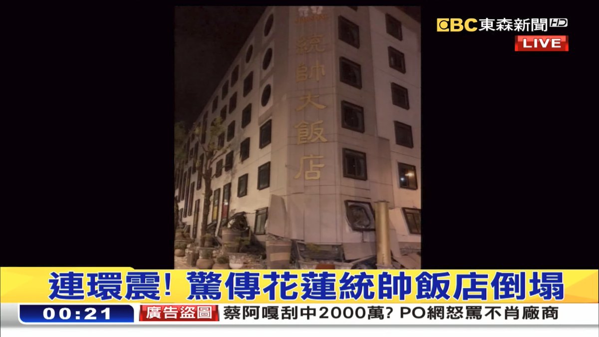 @PokeFans_Taiwan 台湾花蓮駅前統帥ホテルビル倒壊写真 .