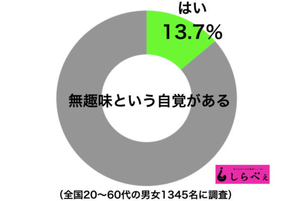 全体の1割以上が「無趣味」と回答した。全体の1割程度とはいえ、楽しみや打ち込む趣味がないという人はいるようだ。