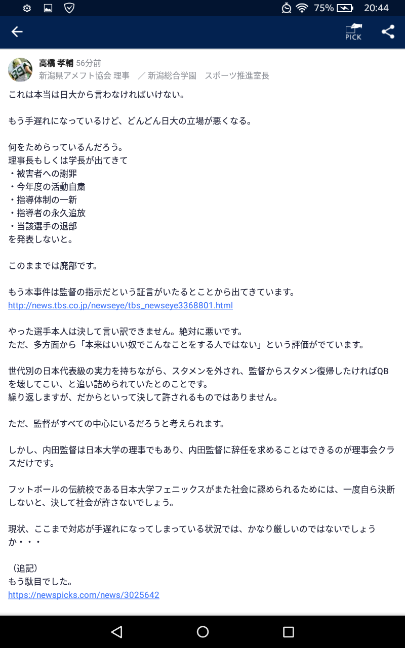 新潟県のアメフト協会の理事がオフィシャルでこの発言してんの?