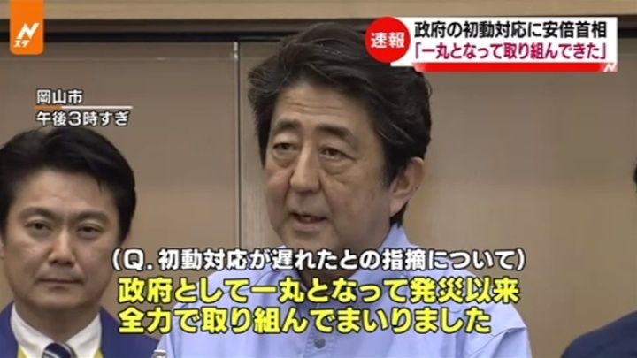 西日本の豪雨災害で甚大な被害を受けた岡山県を訪問した安倍総理は、政府の初動対応について「一丸となって発災以来、取り組んできた」として、問題はなかったという認識を示しました。