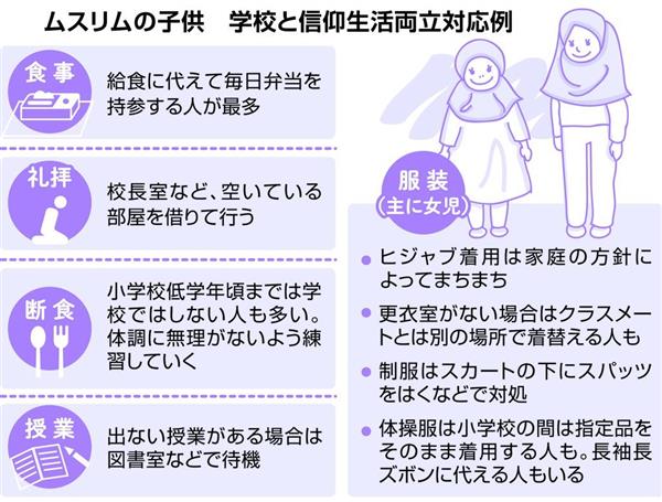 日本で暮らす外国人が増加する中、近年は学校にムスリム(イスラム教徒)の子供も増えているようだ。食事や服装、礼拝など、さまざまな戒律があることで知られるイスラム教だが、子供たちは日本の学校と信仰生活をどのように両立しているのか。現場ではさまざまな工夫がされている。(加藤聖子)