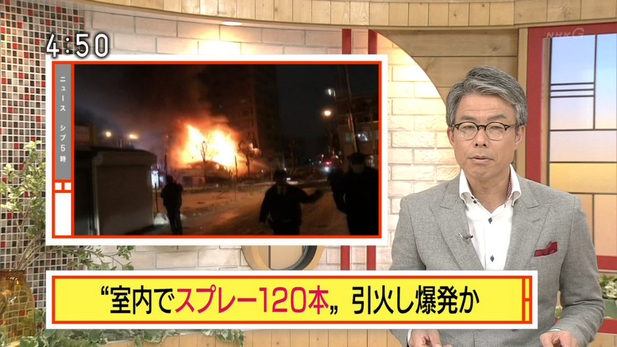 16日夜、札幌市豊平区で起きた爆発で、全焼した建物に入る不動産会社の関係者が、「室内で除菌消臭用のスプレーおよそ120本をまいた」と話していることが、捜査関係者への取材で分かりました。警察は、室内に充満したスプレーの成分に引火して爆発した可能性があるとみて調べています。