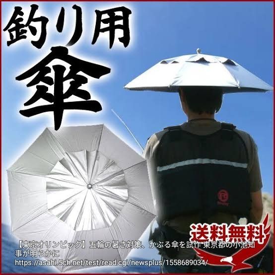 直径60センチで熱や光を遮る効果のある素材を使う。内側のベルトで頭に固定し、両手が使えるメリットがある。今後実施される五輪のテスト大会などで配る予定。