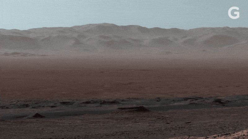 実はここ、ゲイル・クレーターという大昔に隕石が衝突した窪地なんだそうです。動画で遠くに見える山脈は、直径154kmにおよぶクレーターの外環なんですって。