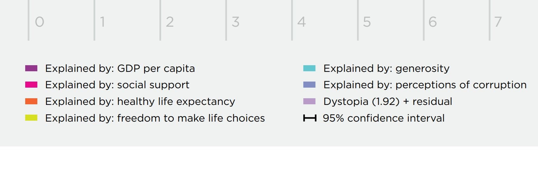 ランキング上位の5カ国はいずれも幸福の条件となる6指標の評価が高く、デンマーク、スイス、ノルウェーは過去のランキングで首位に浮上したこともある。