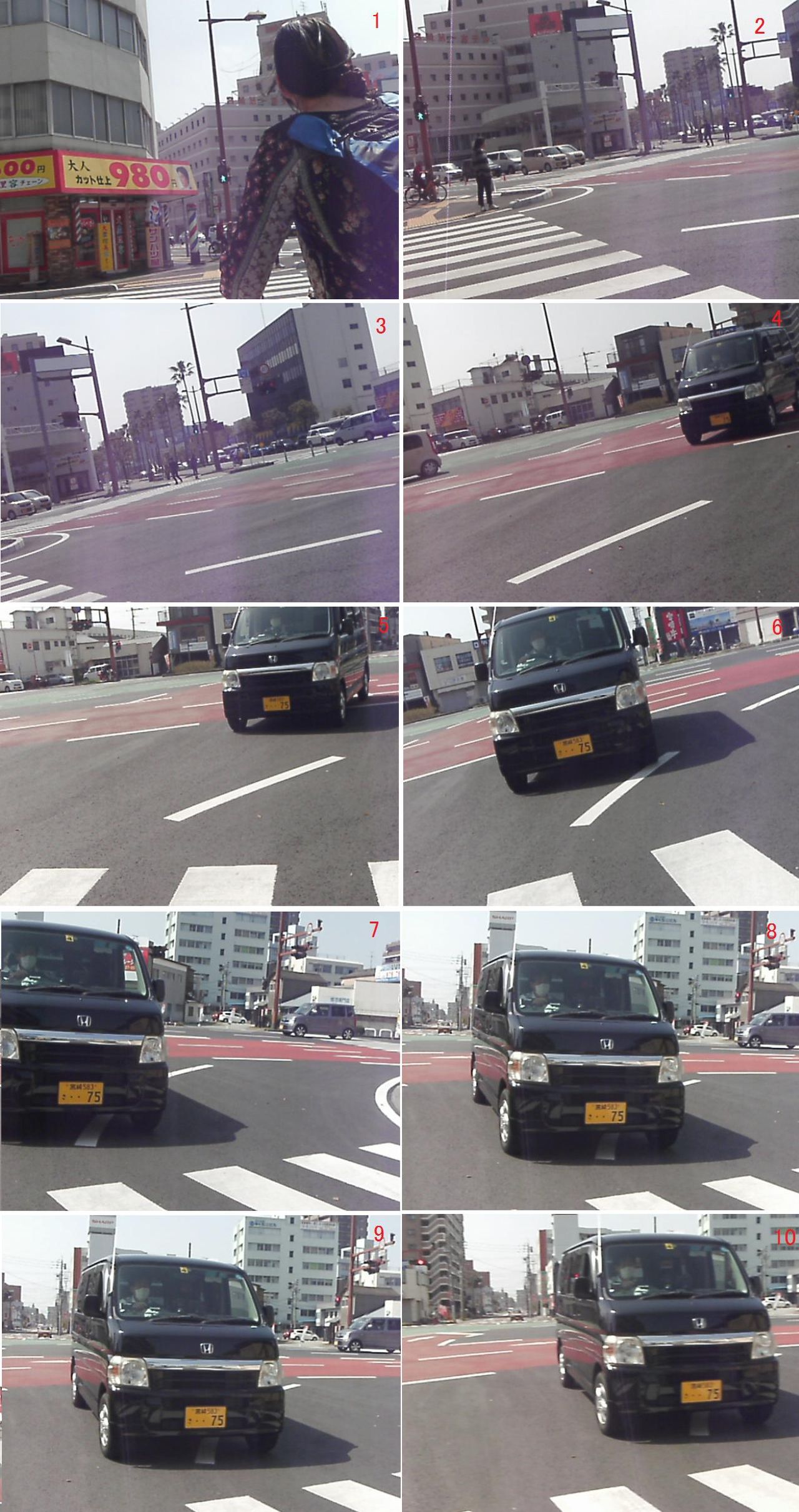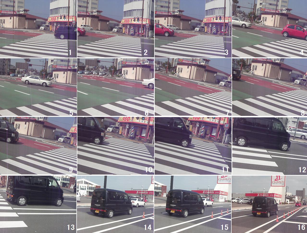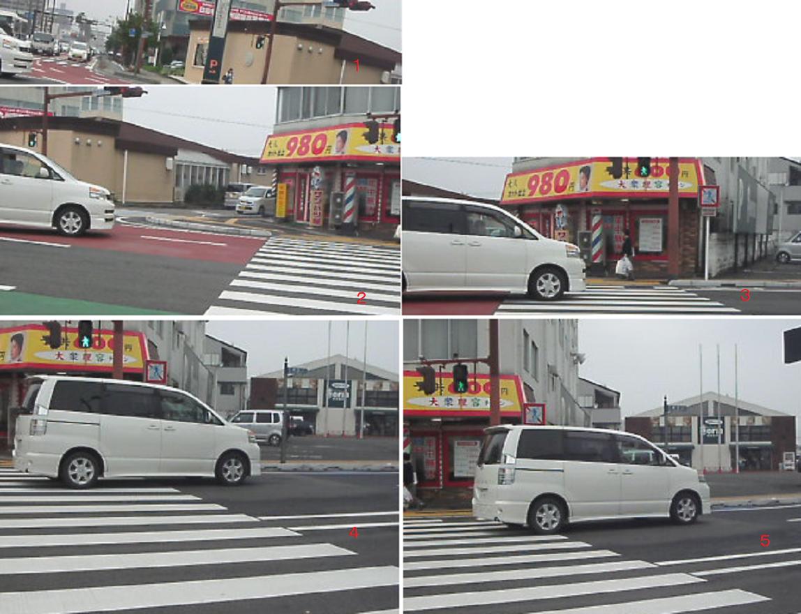 別の日の同じ道、信号無視常習地帯。
