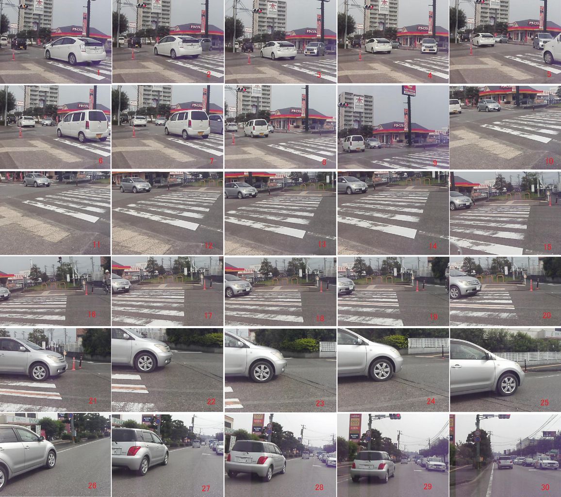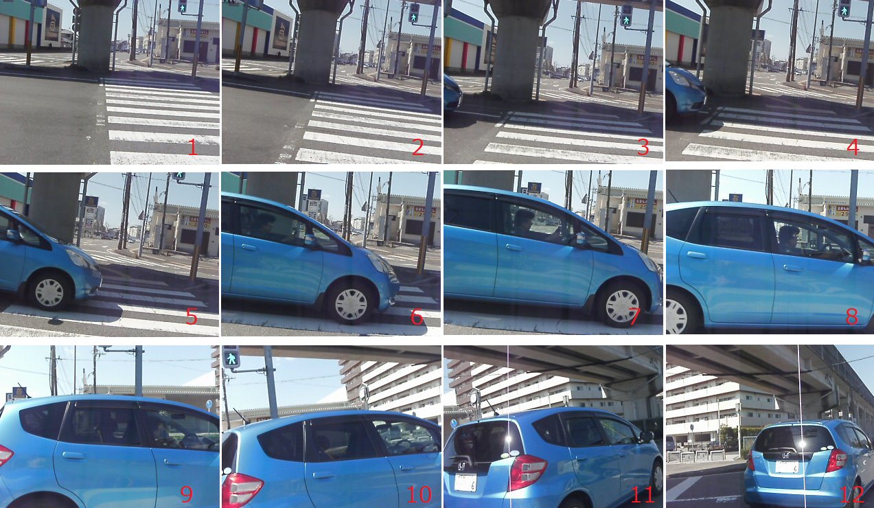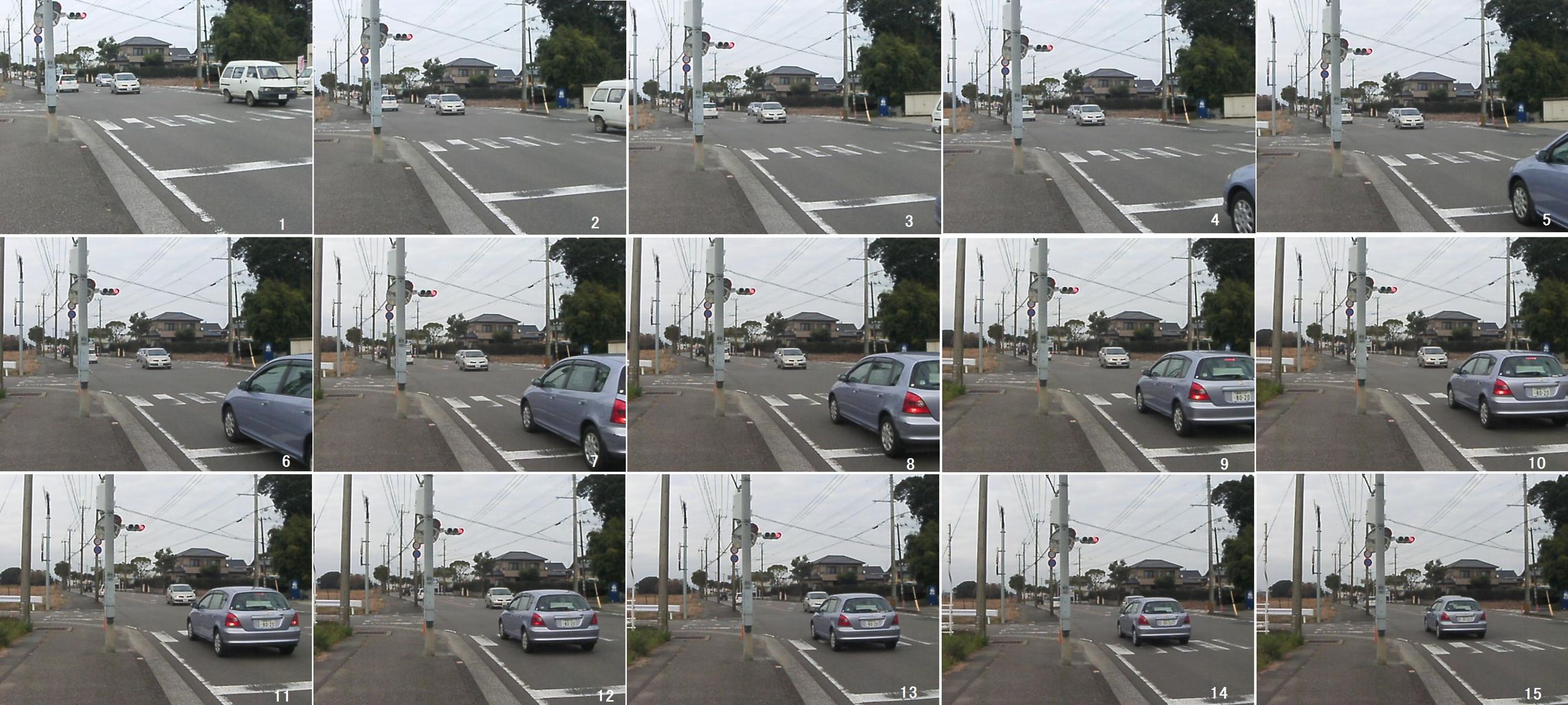 信号が黄色で数台通過、赤でも7秒間数台通過。