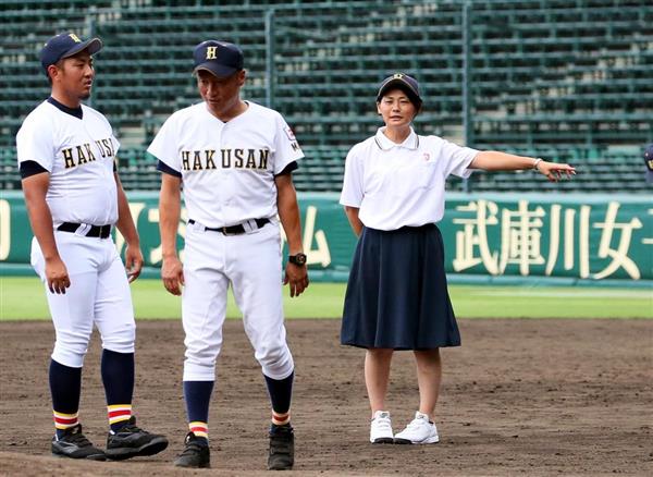 第100回全国高校野球選手権記念大会(5日開幕・甲子園球場)の出場校による甲子園見学が31日、スタートし、春夏通じて初出場の白山(三重)の女性部長・川本牧子氏(30)が打席に立ってスイングし、大会関係者に制止される場面があった。