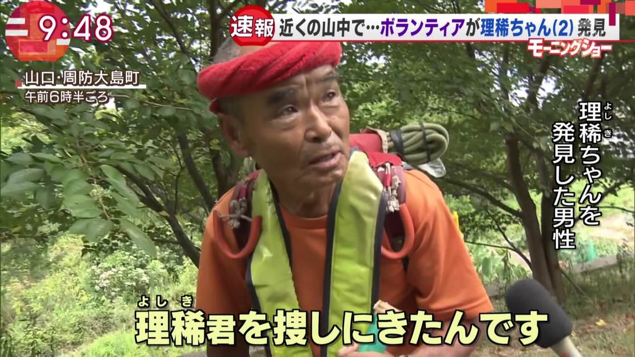 山口・周防大島町で行方不明になっていた2歳の男の子を、3日ぶりに発見した捜索ボランティアの男性が、記者会見を行った。