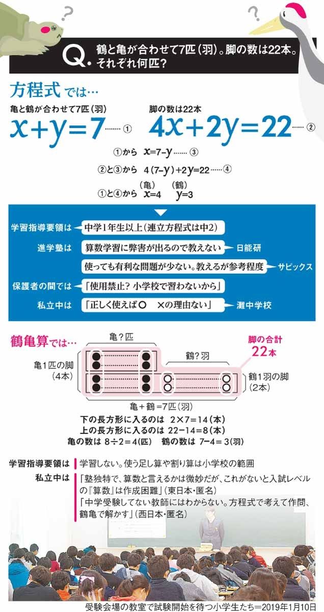 中学入試で方程式は使っちゃダメ……? 中学受験をする小学生たちの周辺で、そんな説がまことしやかに語られています。「理解が困難」「小学校で習わないから」と理由も様々ですが、果たして実際はどうなのか。謎を追うと、一部の教室でおこなわれる窮屈な指導法の問題と、学びの自由とでもいうべき深いテーマに行き着きました。