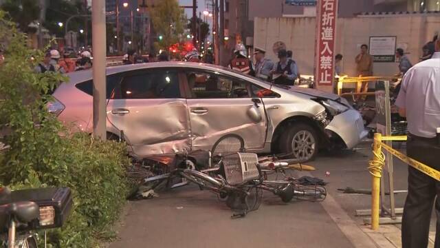 3日午後6時半ごろ、大阪 此花区にあるスーパー「ライフ此花伝法店」の駐車場近くの歩道に、乗用車が突っ込み、歩行者たちをはねました。